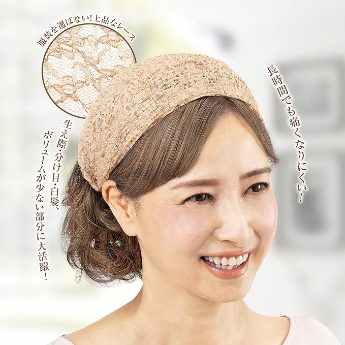 【 3秒で簡単 お洒落に頭頂部カバー 】 イザヴェル カチューシャ ブラウン レディース 薄毛 ボサボサ髪 隠せる 痛くない 幅広 産後 抜け毛 脱毛 つむじ割れ ヘアアクセサリー すっぽり隠れる レースカチューシャ 1個入
