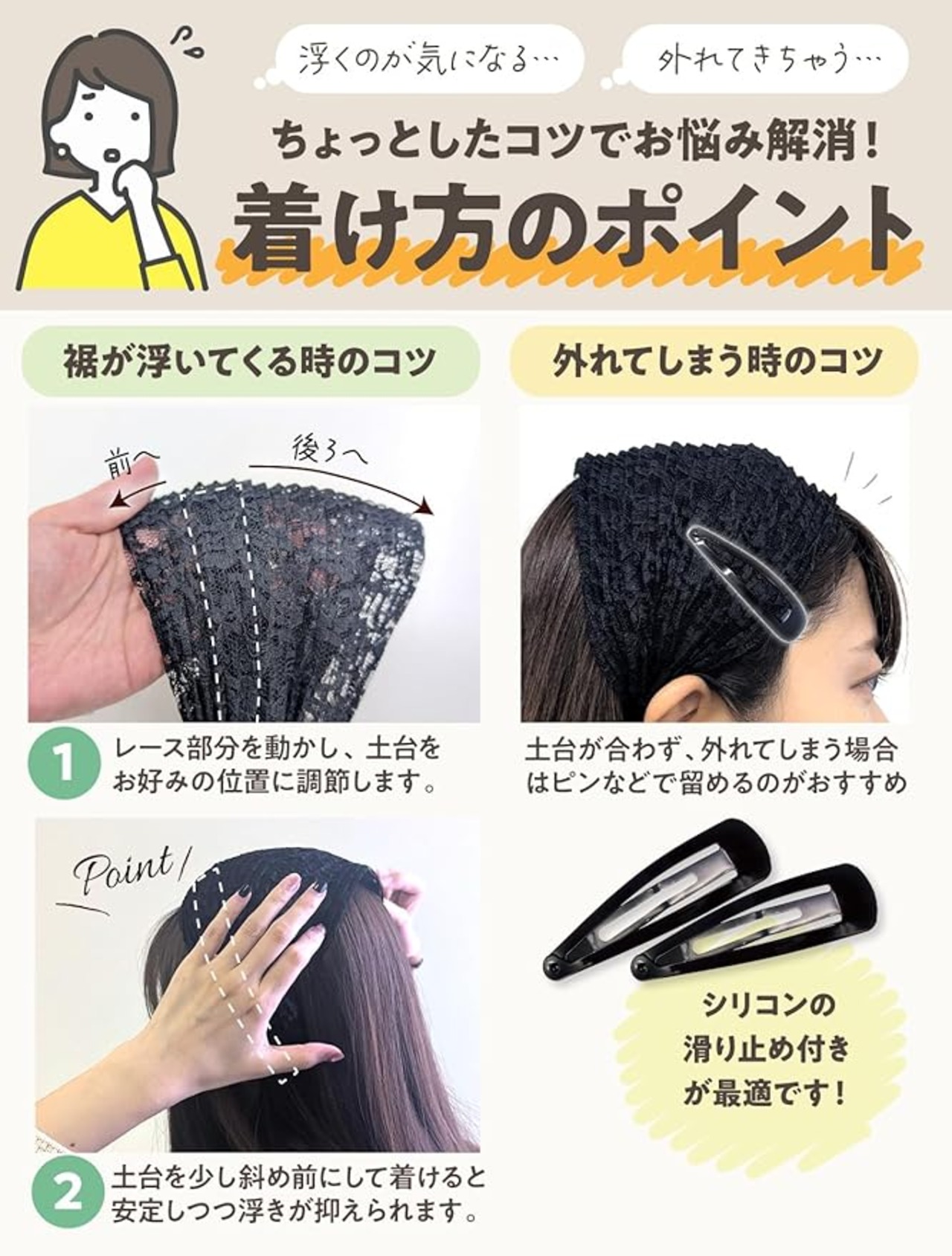 ・幅広にして頭頂部の気になる部分をすっぽり隠す!