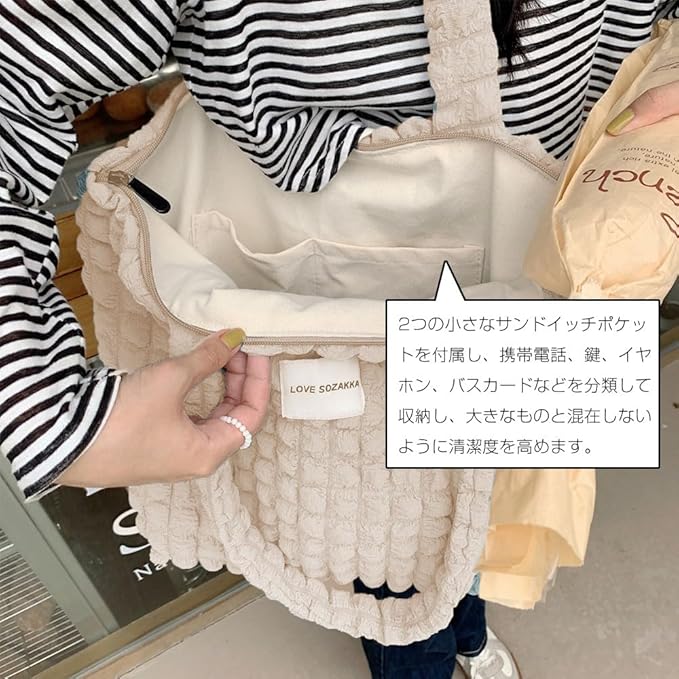 [JetWave] ポップコーン トートバッグ レディース キルティング シャーリング 大容量 通勤 通学 ショルダーバッグ