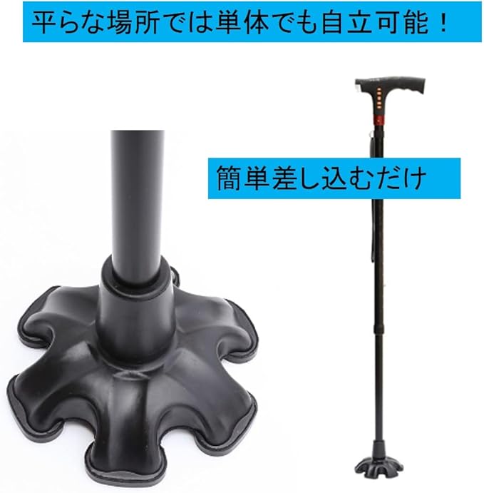 杖先に取り付けるだけで杖の安定感をUPさせてくれる6本足のステッキゴムです!差し込むだけの簡単な取り付け♪平らな面では単体でも自立可能でお出かけや収納の際も便利◎