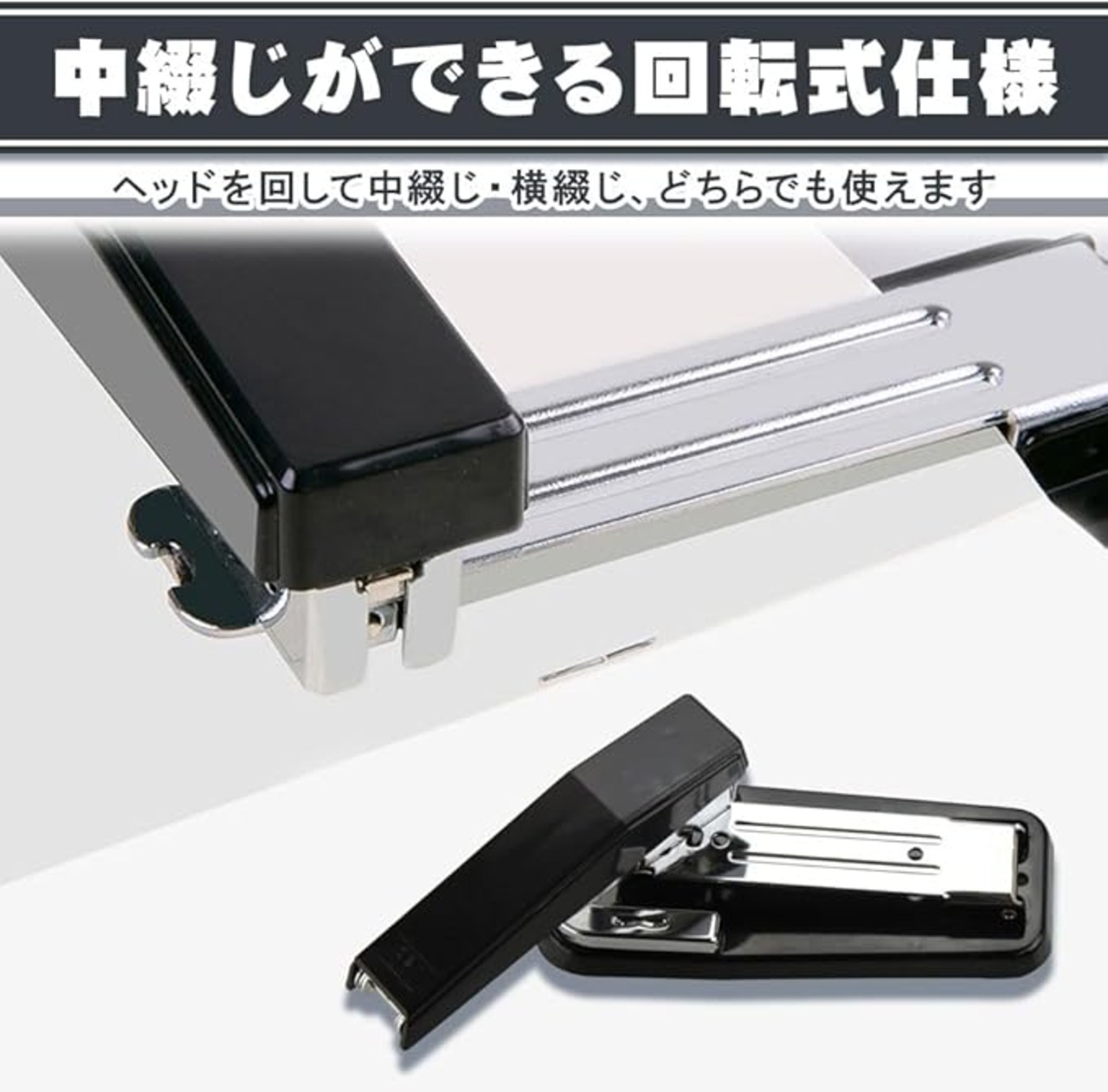 中綴じホチキス 回転ヘッド 滑り止め 大容量 オフィス 汎用性 資料作り 書類整理 業務用