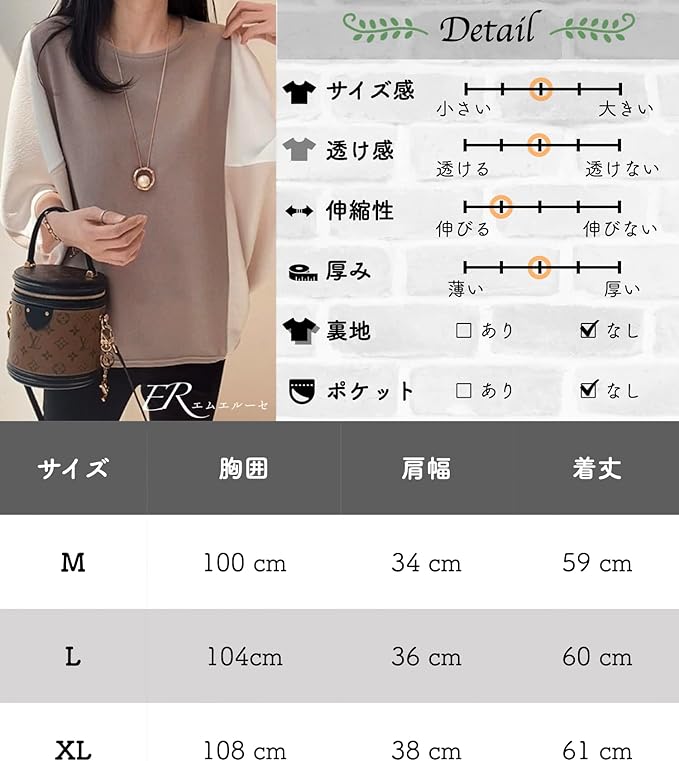 合わせるアイテムを選ばない1枚なので、タイトスカートやレーススカート、フレアスカートやプリーツスカート、ワイドパンツやアンクルパンツなどと合わせれば、キレイめオフィススタイルが完成◎ デニムパンツやフレアパンツ、オールインワンやジャンパースカートなど、ラフなアイテムと合わせると、動きやすい大人カジュアルスタイルもお楽しみいただけます♪ 春にはトレンチコートやジャケット、カーディガンやコーディガンと合わせて着ていただければ、少し肌寒い時期でも美しく着こなせます♪ また、シーズン小物を組み合わせると、さらに季節感も出てワンランク上のオシャレなスタイルがお楽しみいただけるので、おすすめですよ◎ 締め付け感がないので、妊婦さんのマタニティーウエアーや動きやすいオシャレママコーデにもぜひお試しください!