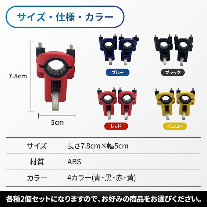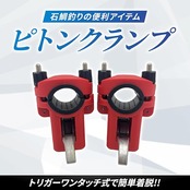 ・石鯛釣りの便利アイテムピトンクランプです。 トリガーワンタッチ式で穂先をブレずに着脱!置き竿から瞬時に手持ちに切り替え合わせられます。・石鯛釣りでは竿受けを使用することが多いと思います。しかし、よそ見しているときにアタリが出て竿が弾いて落水したり、大型のアタリで竿尻を外すことができずバラしそうになった経験はありませんか?・本製品はトリガーワンタッチ式となっておりますので強烈な抑え込みでもピトンから石突が抜けない、なんことはありません。・取り付けも簡単 竿を挟んでネジを閉めるだけ。 取り付け可能な釣竿直径は19~32mmでほとんどの竿に装着可能です。ロッドの傷を防止するラバーグリップを使用しております。・【サイズ】 長さ7.8cm 幅5cm ピトン径8㎜ 【カラー】青 黒 赤 黄 の4色それぞれ2個セットにてご用意しました。お好みに合わせてチョイスしてください。