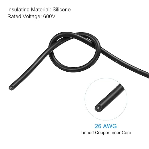 限定 シリコーン樹脂電線 シリコンワイヤー 26AWG 26ゲージ フレキシブルブリキ銅 標準 高温フックアップワイヤ ブラック 長さ15m 自動車 モデル マニピュレータ 電気器具 DIY