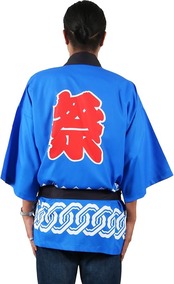 [スペースホビー] 色を選べる はっぴ 法被 祭[大きいサイズ] BIG サイズ 腰ひも付き つなぎ柄 イベント 行事 楽しいひと時 楽しい思い出 一体感 おそろい コーデ 男性 女性 大人用 衣装 青 10101461