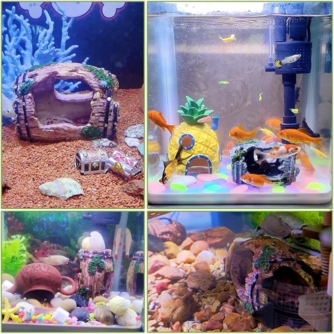 【位置調節可能】水族館の装飾品のフラットボトムとその重さは、魚のタンクの1か所に着実に立つことができるくらい重いです。自分の好きな位置に置くことができます!