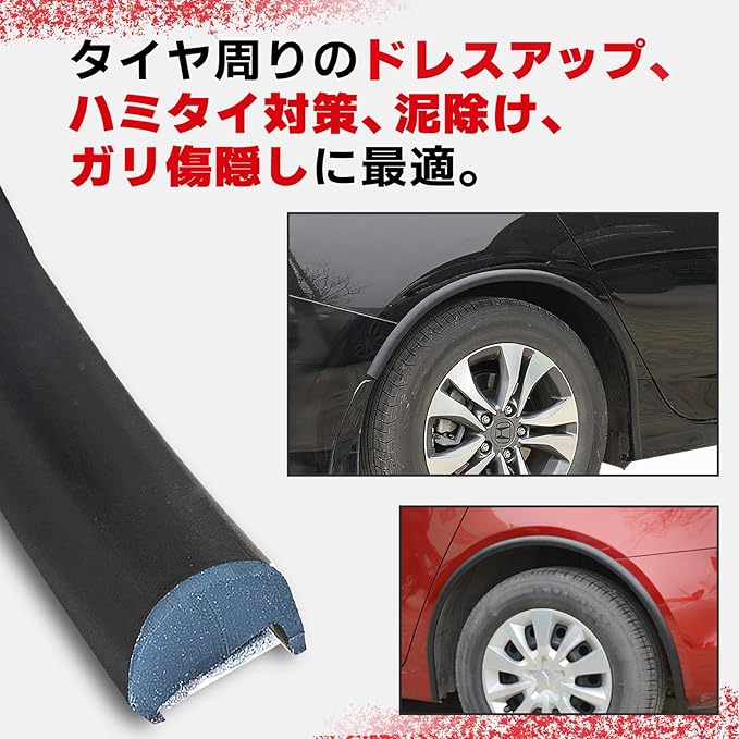 UB-Lab. 車 フェンダー モール オーバー フェンダー ホイール アーチ ガード 黒 ゴム 両面 テープ 付 12 mm 3 m