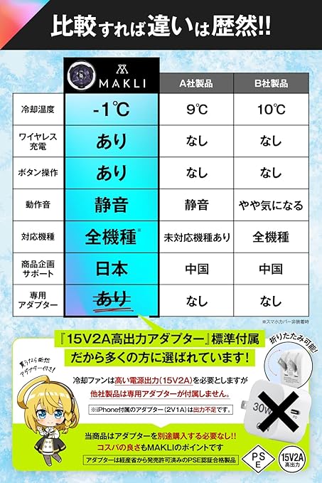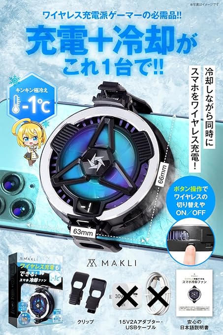 MAKLI スマホ 冷却ファン ワイヤレス充電 スマホクーラー ペルチェ素子 スマホ冷却 USB給電 スマホ熱対策 静音設計 小型 軽量 日本人サポート 日本語説明書 (ワイヤレス冷却ファン) +1年サービスパック(修理料金全額サポート) ((ワイヤレス冷却ファン))