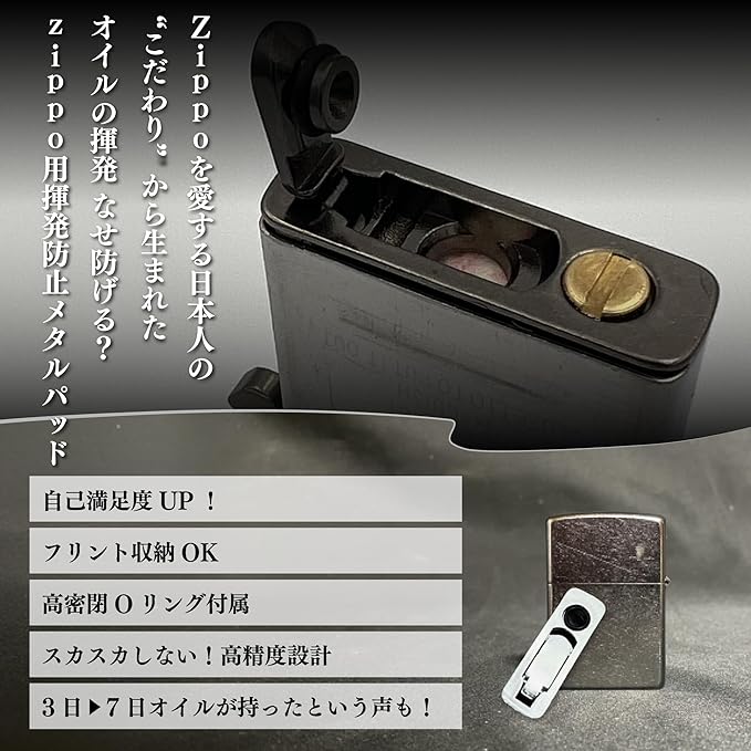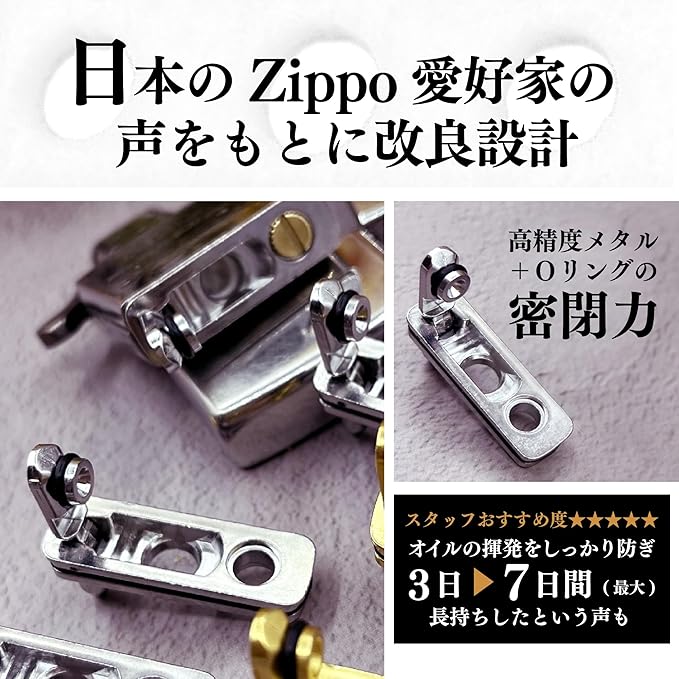✅【ジッポーオイルの揮発を抑える】高精度メタル+Oリングで密閉力アップ。底面からの揮発をしっかりカットし、オイルの持ち時間を最大7日間に延長。