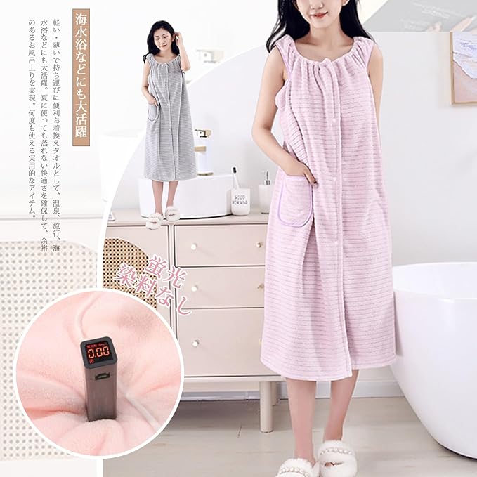 [Vmiutyer LLOP] 着るタオル レディース 大人用 タオル地 ポケット付き 吸水 速乾 湯浴み着 お風呂上り プール 温泉 ジム 旅行 ふわふわ 着替えタオル 部屋着 春 夏