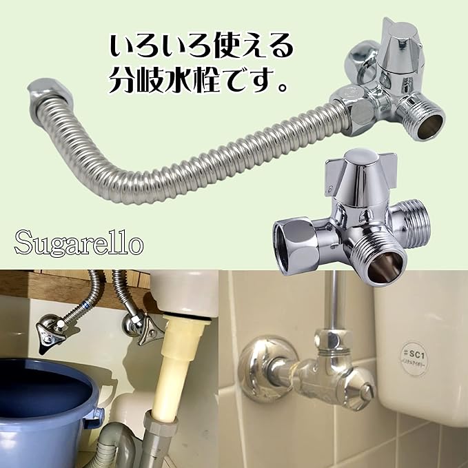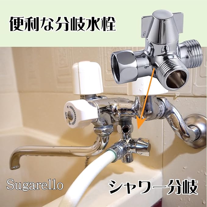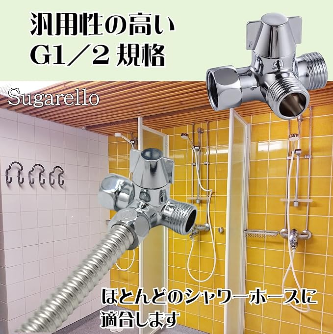 Sugarello 分岐バルブ T型 分岐水栓 3方向 3口 分岐栓 水流切り替え シャワー シャワーヘッド用 アダプター バスルーム用 交換部品 G1/2