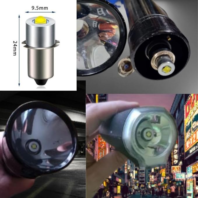 白熱懐中電灯をこのP13.5S形状のLED電球に変換し、LED懐中電灯としてマグライトに互換性の電球または交換用懐中電灯に現代の新しい息を吹き込みアップグレードします。従来のクリプトン球ではどうしても暗く感じる場合LED化する事で手元は明るくそして更に遠くも照らし出す事が可能となります。