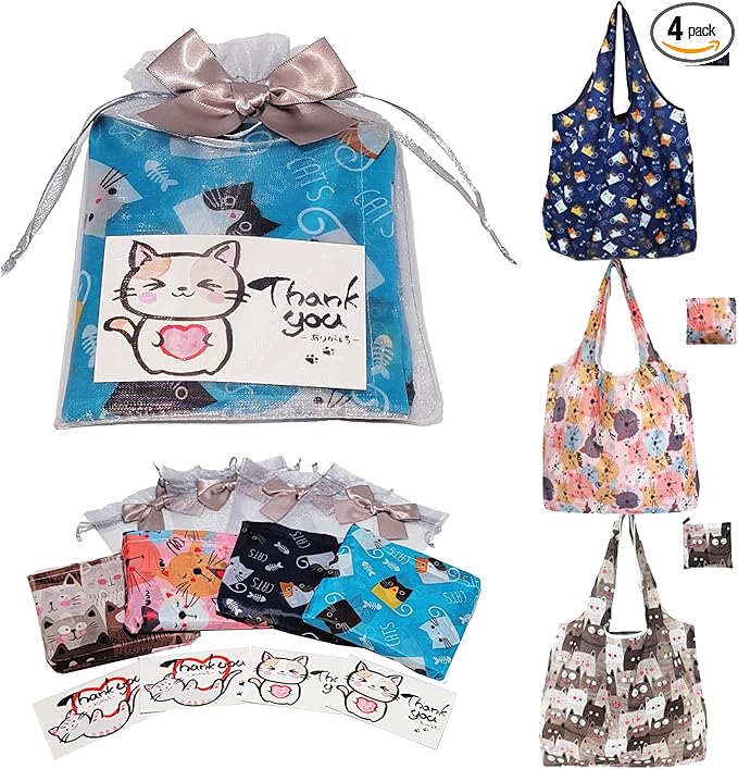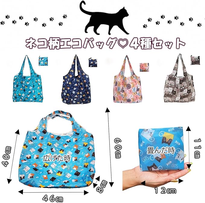✅【内容量】 ・エコバッグ 4種 1 計4個 (広げ時サイズ46㎝ 60cm マチ8cm) (収納時サイズ11㎝ 12cm) 重量28g 素材 ポリエステル ・ラッピング袋 1色 4 計4枚 サイズ13㎝ 18cm ・メッセージカード 2種 2 計4枚 サイズ9㎝ 5.5cm