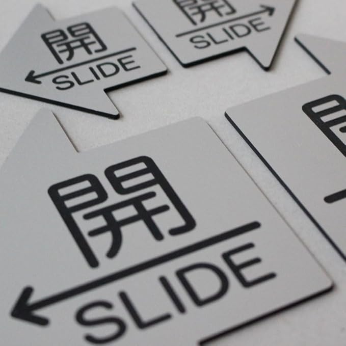 MKE 矢印のカタチ 引き戸 プレート 左方向 ドアプレート 刻印 シール付 (開/左/シルバー/大)