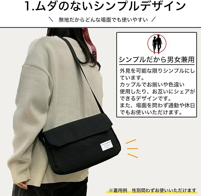 [ユニベイズ] [本当に沢山入る!] ショルダーバッグ メンズ レディース 小さめ 軽量 斜めがけ ナイロン シンプル ストリート