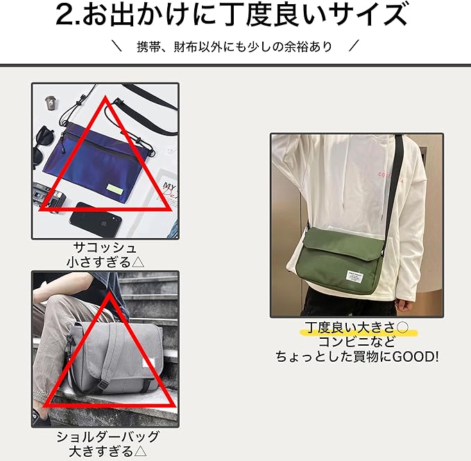 [商品名] ショルダーバッグ メンズ レディース 小さめ 軽量 斜めがけ ナイロン シンプル ストリート 無地 サコッシュ