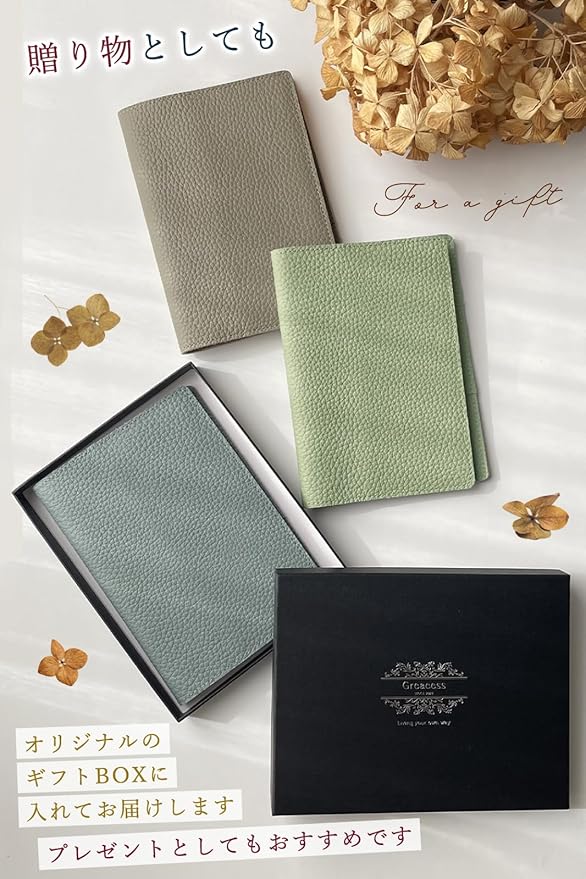 【手帳カバーやノートカバーとして】こちらのブックカバーはA6サイズとなっておりますので、手帳やダイアリー、ノートなどのカバーとしてもお使いいただけます。