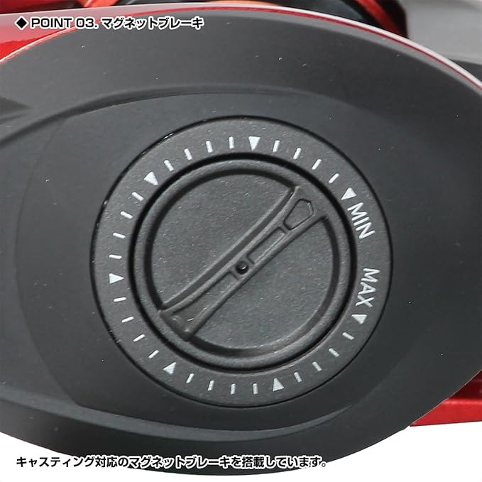 最大8kgのドラグ力でボトムに張り付いた大型タコもパワーで引き剥がします。ちょっとしたキャスティングに対応するマグネットブレーキ搭載。PEライン2号相当約200mが付属。
