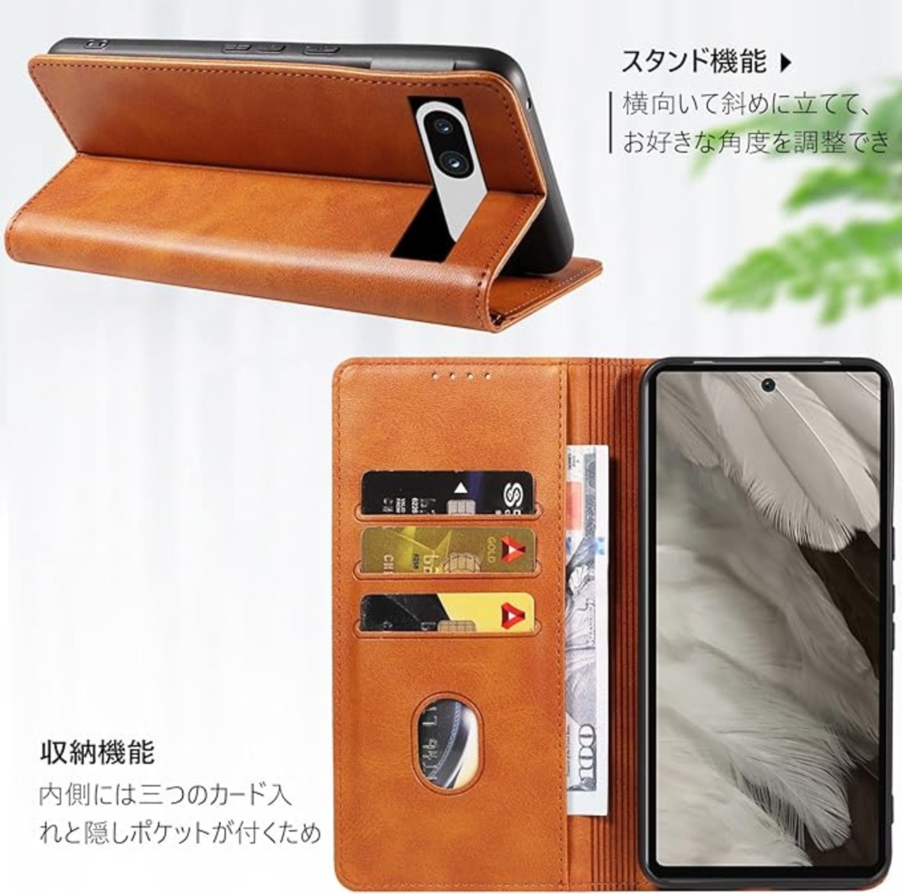 【多用機能】このpixel 8 ケースは横置きのスタンド機能が付いて、好きな角度を調整して動画鑑賞や読書などを楽しめます。pixel8 カバーの内側に3つのカードポケットと1つの隠しポケットがあり、カードや小銭などを入れることが可能です。お気に入りの写真がよく見えるように特別にデザインされた透明な窓。