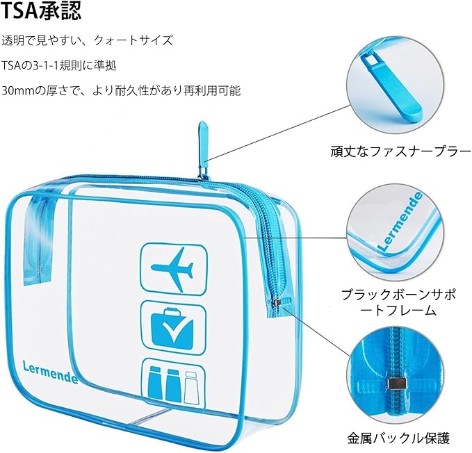 TSA認証:透明なトラベルポーチはTSAの3-1-1規則に厳密に従い、スムーズに空港のセキュリティチェックを通過でき、旅行中の時間と手間を節約します