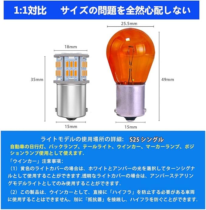 【形状】S25_180 (シングル)BA15S/P21W /1156/ G18 兼用、極性なし、12V-24V専用,1080LM/2個 54LED 3014SMD アンバー 。