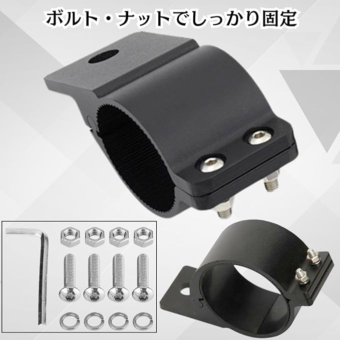 ステー2個セット。フォグランプやバーライト、アンテナなどを取り付ける事ができるステーです。車のバンパーやパイプ、グリルガード、ルーフラックなどに設置可能です。