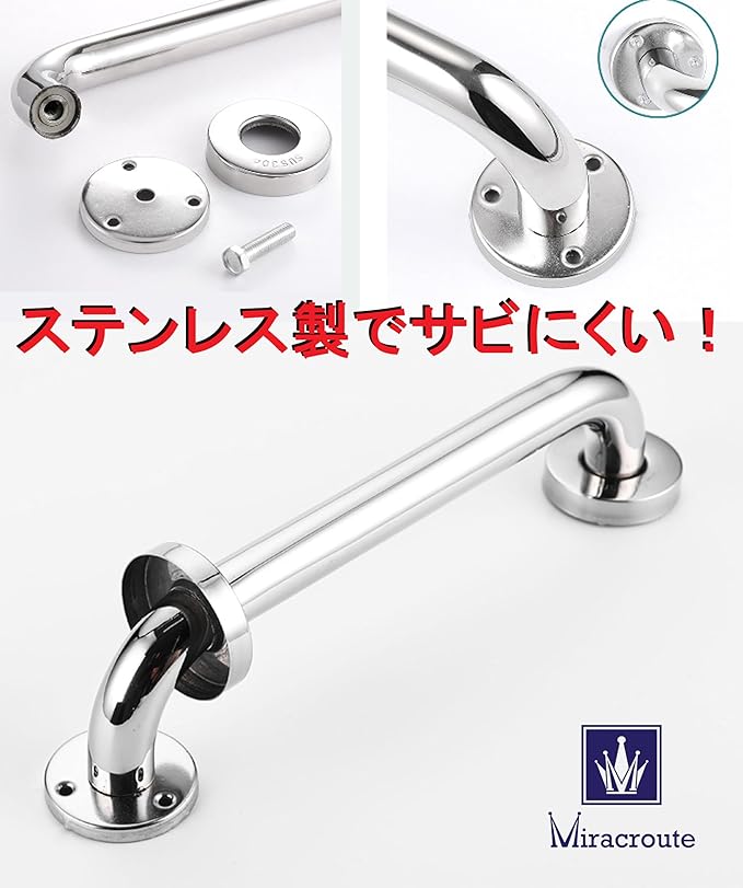 30cm ステンレス 手すり 浴室 玄関 階段 トイレ 多用途 介護 妊婦 高齢者 子供 転倒 滑落 防止 お風呂 浴槽 屋内 屋外 補助 予防 手摺 てすり (単品(1本))