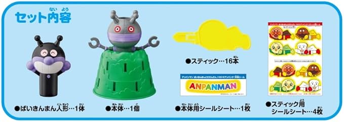 【セット内容】本体、ばいきんまん人形、スティック 16、本体用シール、スティック用シール 4