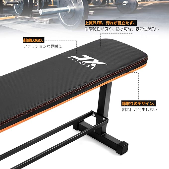 JX FITNESS 多機能フラットウェイトベンチ トレーニングベンチ シットアップベンチ ダンベル プレス用 腹筋 背筋 収納ラック付き多用途の 筋トレベンチ