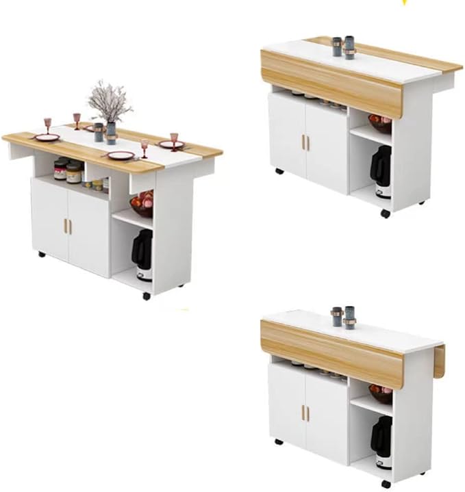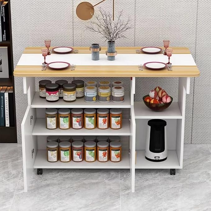 【キッチンの作業スペース拡大にも便利】折りたたみの可動天板はそれぞれが可動、固定できるので片側、両側好きなように広げられます。 キャスター付きで移動も簡単♪ 扉付きのやオープンスペースなど、収納スペースもたっぷり。 棚板は可動出来るので、背の高いものから小物までしっかり収納出来ます。