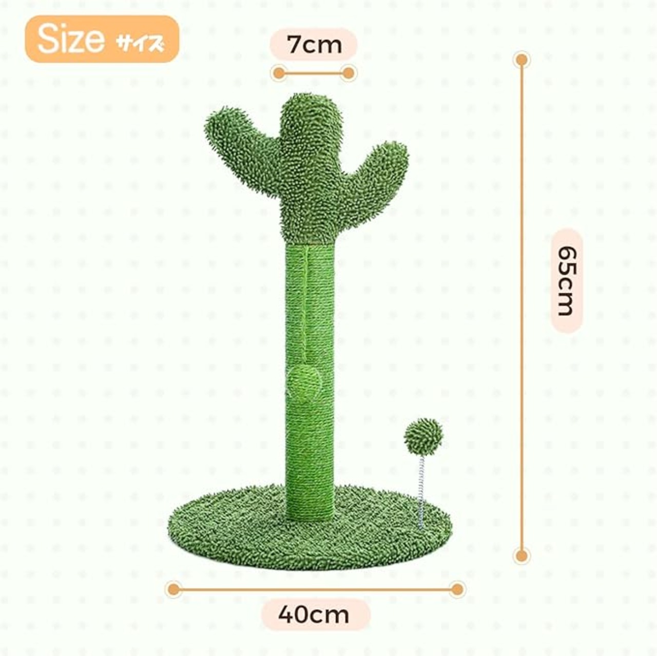 PAWZ Road 猫 爪研ぎ 縦型 爪とぎポール サボテン 大型猫 麻紐 キャットタワー 低め 猫タワー ねこのおもちゃ 省スペース 運動不足解消 猫の遊び場 - 高さ65cm グリーン