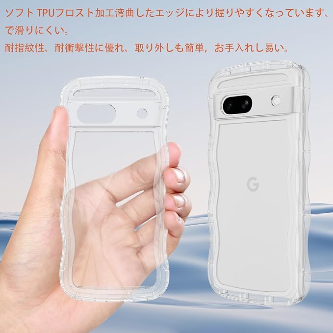 QAZWERT Google Pixel 7A ケース クリア ウェーブ ピクセル 7a ソフト TPU うねうね 透明 ケース マツと感 人気 韓国 耐衝撃 なみなみ カバー 滑り止め 薄型 軽量 おしゃれ 黄ばみなし アクスタが入る スマホケース pixel7A おしゃれ 落下防止 ワイヤレス充電対応 ストラップホール付き グーグルピクセル7a なみなみ カバー(7Aクリア)