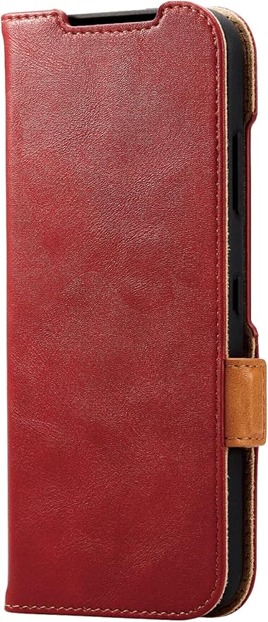 エレコム かんたんスマホ3 ケース カバー 手帳型 革 レザー マグネットフラップ 受話口付きフラップ カードポケット付き ストラップホール付き レッド PM-K222PLFYRD