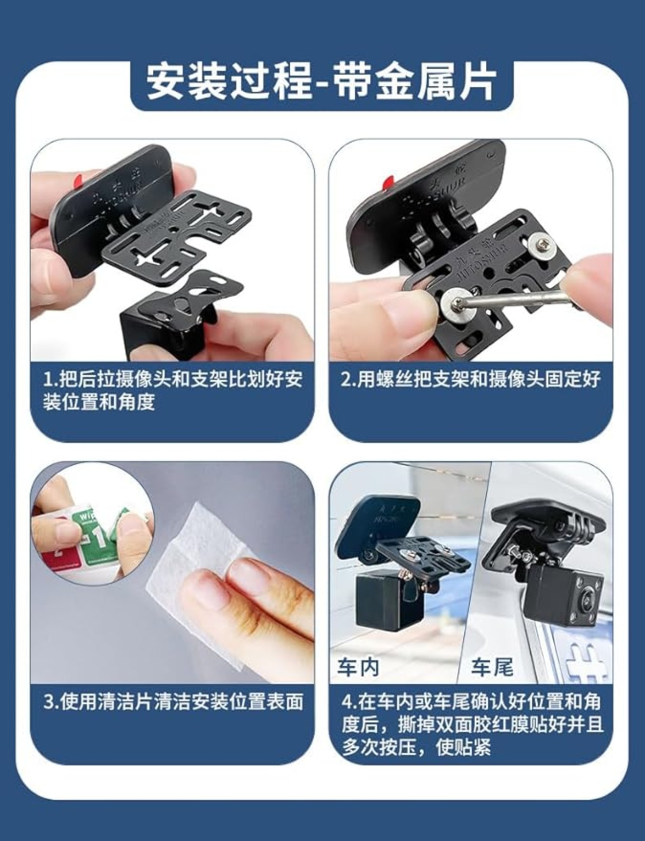 ドライブレコーダーのリアカメラをリアウインドウに取り付けるブラケットです。 リアカメラの固定が両面テープでしっかり綺麗に固定できます! さらにリアカメラの角度調整ができます! 専用のプライマー(下地処理剤)が付いており、強力に固定できます!