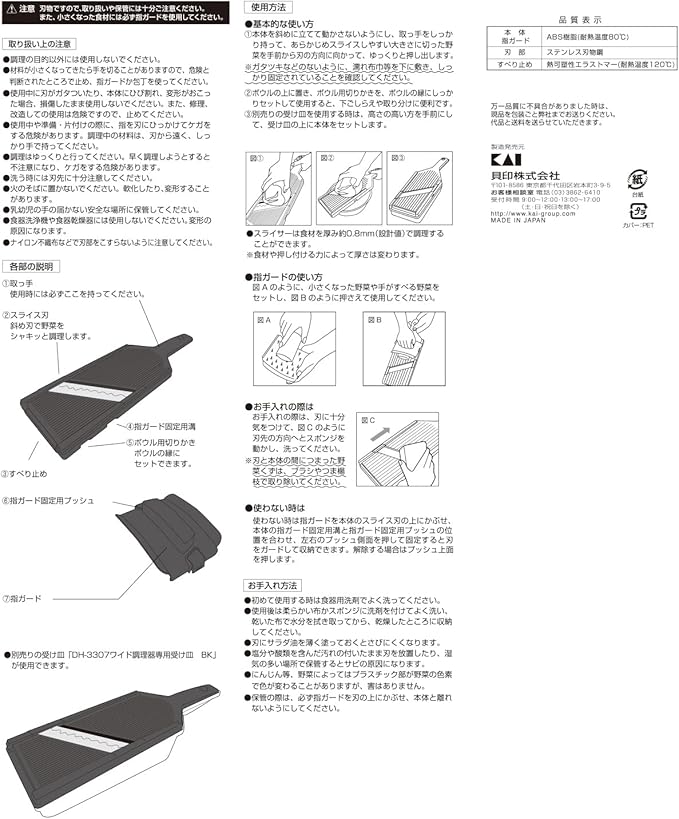 貝印 KAI キャベツスライサー 関孫六 ワイド ガード付 日本製 DH3304