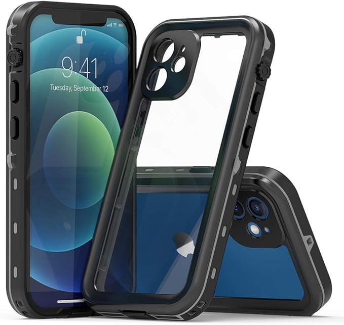 Taosan iPhone 12 mini 防水ケース 5.4インチ IP68防水規格 指紋認証対応 ワイヤレス充電対応 防水 防雪 防塵 耐震 耐衝撃 アイフォン12ミニ ケース 防水カバー ストラップホール付き ブラック