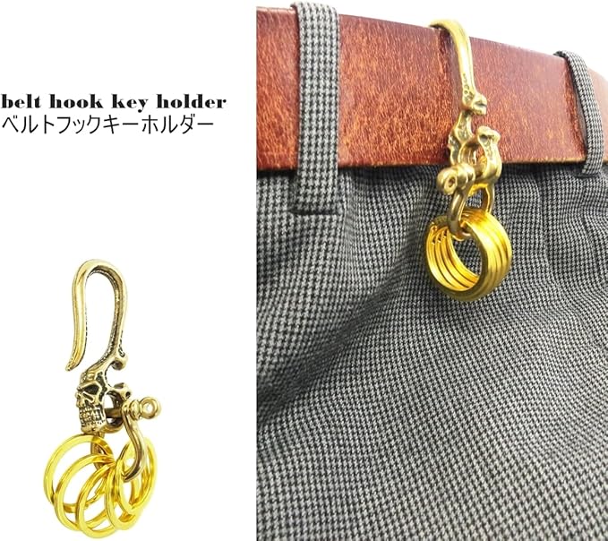 [mind items] 骸骨 キーホルダー キーフック 馬蹄 カラビナ ホースシュー キーチェーン ゴールド 真鍮 BRASS ブラス 釣り針フック ウォレット バイカー ウォレットチェーン | etshop