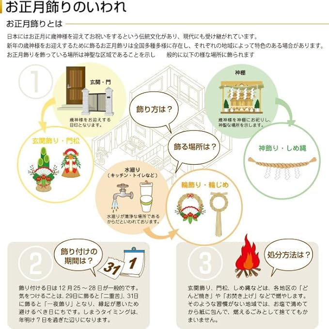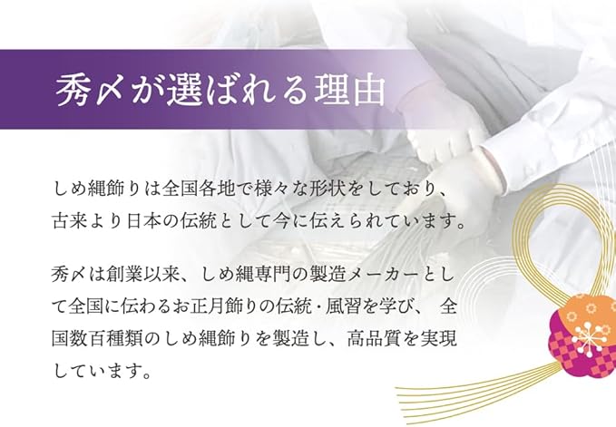 神様をお祀りする神棚に飾ります 4尺(120cm)の神棚用です 【飾り方】 しめ縄にヘイソク(紙)4枚を均等な間隔で取り付けます 太い方を右にして神棚に飾ります