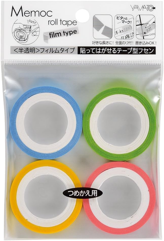 パステルカラーの半透明フィルムフセン、メモックロールテープ。
