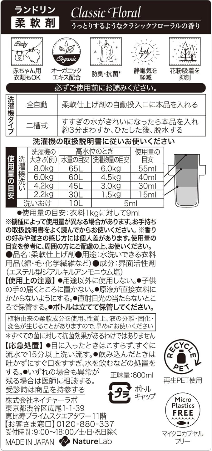 Laundrin'(ランドリン) ネイチャーラボ 柔軟剤 クラシックフローラル 600ml
