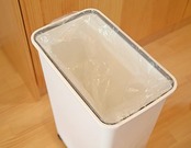 ボタンを押してワンプッシュで開閉するゴミ箱。