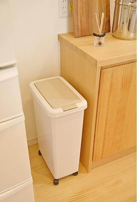 サンコープラスチック 日本製 ゴミ箱 スリムプッシュ 30L キャスター付き ライトベージュ