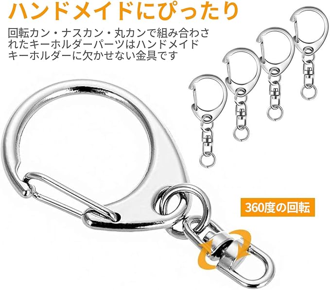 【独創的な構造】キーホルダーパーツとスピニングジャーを組み合わせた那須ジャーと丸ジャーは、手作りキーホルダーに欠かせないアクセサリーです。那須つぼや丸つぼを使い、フェルトマスコットやレジン、プラ板、革小物などを取り付けると、独創的なキーホルダーが完成します。 キーホルダーは30個入り(シルバー色)。