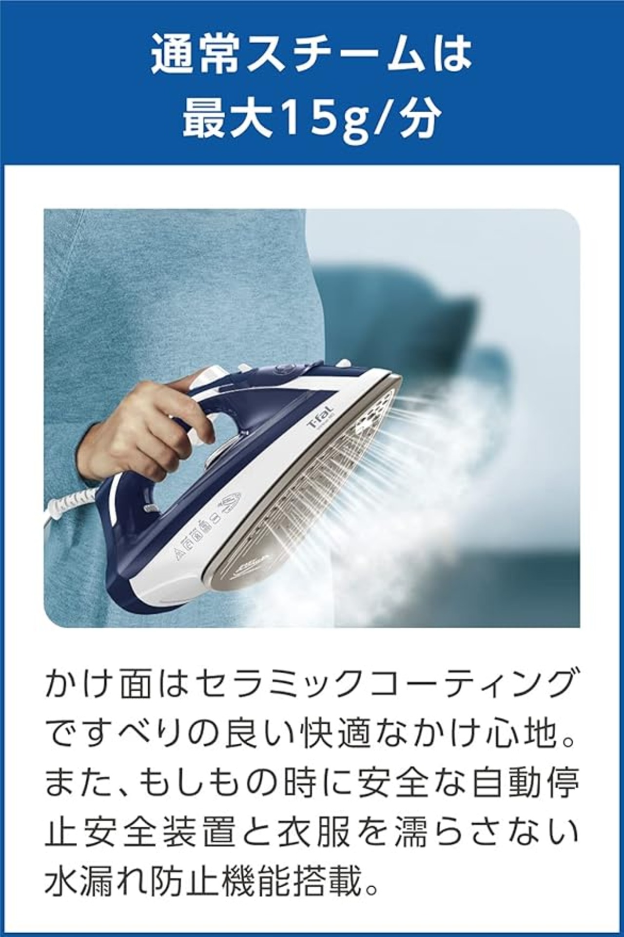 ティファール パワフルスチーム 最大40g/分 コード付き スチームアイロン 「ヴァーチュオ 80」セラミックかけ面 FV1880J0