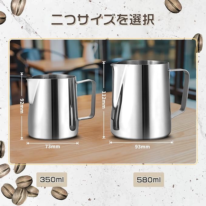 応用範囲:泡立ち抜群の高品質ステンレス製ミルクピッチャーです。 牛乳の泡立て・ フォームドミルク・ラテアートなどに最適です。喫茶店、レストラン、バーなど場所に大活躍。ラテアートの練習する方々に勧めます。