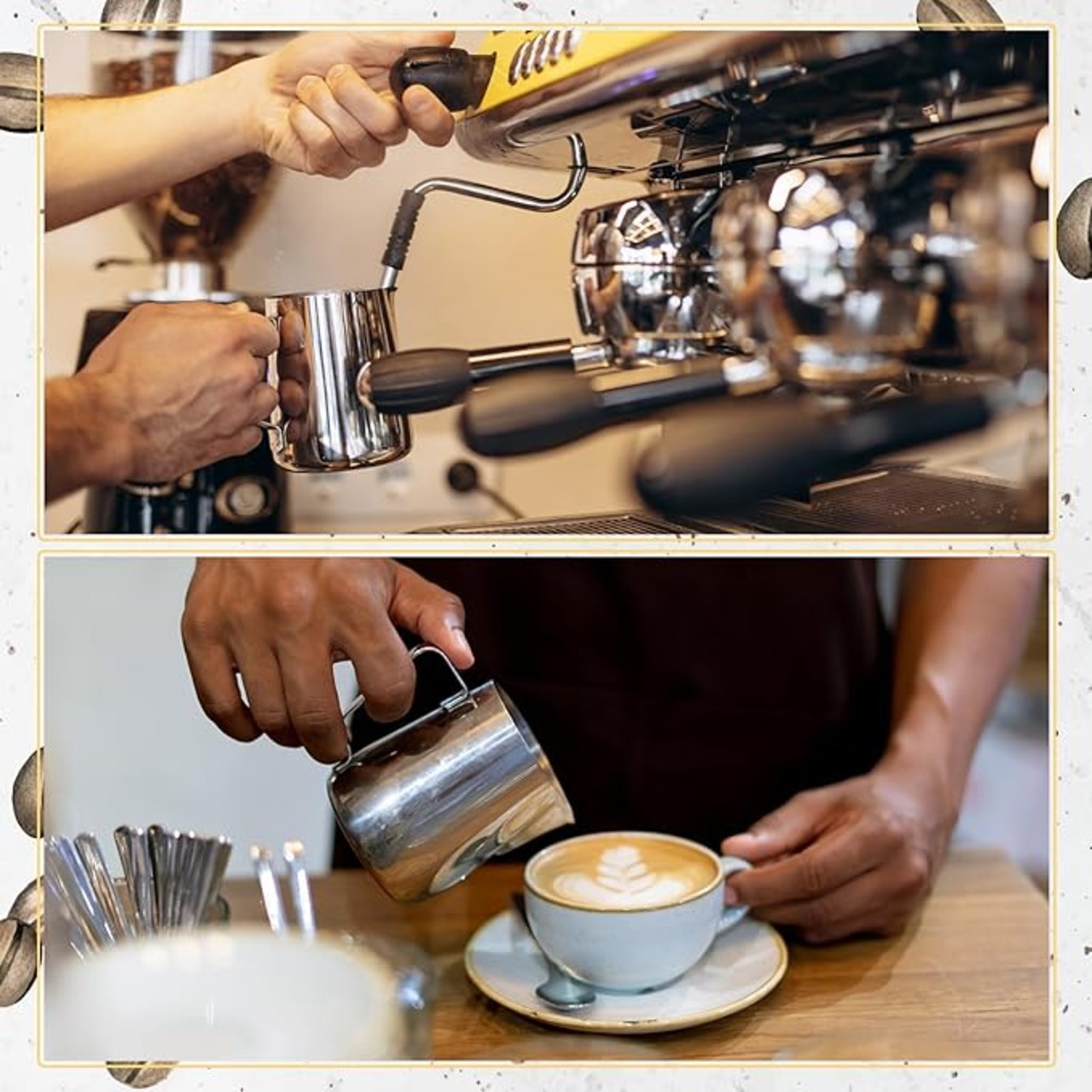 GWHOLE ミルクピッチャー ミルクジャグ ステンレス製 350ml ラテアート デロンギ フォームドミルク カプチーノカップ クリスマス ギフト シルバー