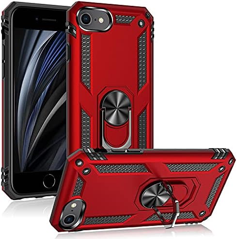 iPhone SE 第3世代 ケース リング iPhone se 第2世代 iPhone7ケース iPhone8ケース DINGXIN 米軍MIL規格取得 耐衝撃 薄型 軽量 車載ホルダー対応 アイフォン se 第3世代 リング付き 360度回転 スタンド機能 TPU+PC 指紋防止 落下防止 擦り傷防止 取り出し易い (iPhone SE 第3世代 ケース, レッド)