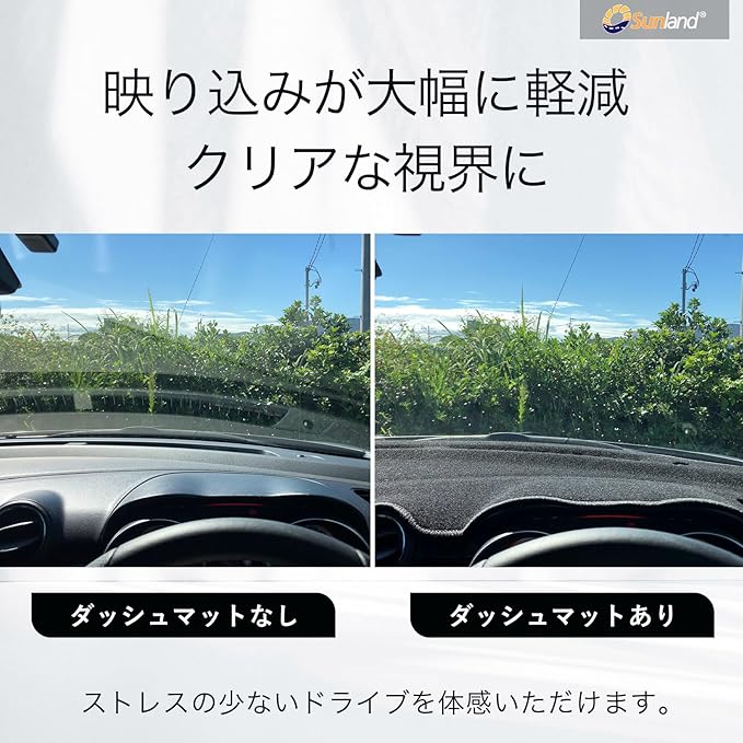 【効果1】フロントガラスへの映り込み・光の反射を抑え、運転を楽にします。ぴったりとフィットし、紫外線からダッシュボードを守り、割れ・硬化・変色・色あせを防止します。