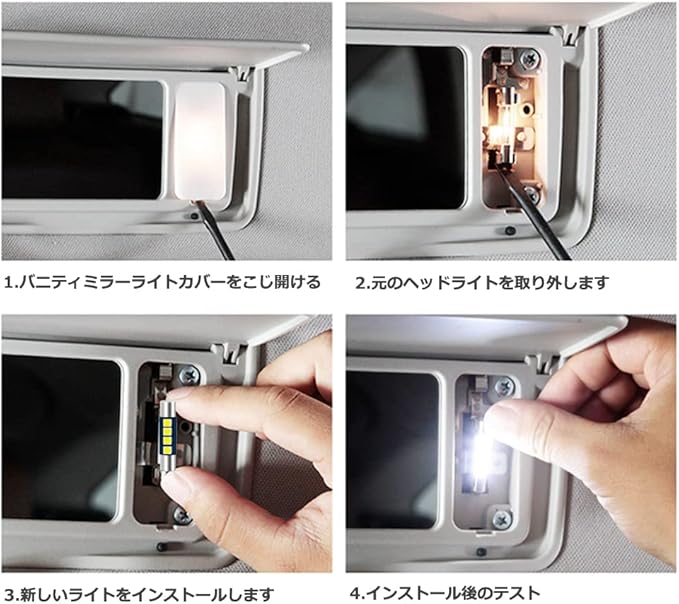 オデッセイ RA6~RA9/RB1/RB3/RC1/RC4 適用/対応 LED バニティランプ T6.3 3cip4連SMD 白 ホワイト ホンダ RA系RB系/RC系 適用/対応ハイブリット 内装品 室内灯 樽型 ルームランプ 電球 LEDライト カスタム パーツ 車用品 カー用品 2個セット (ホワイト)