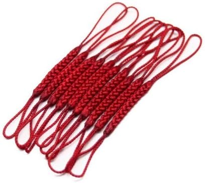 レーヨン両坪根付紐 10本セット ストラップ用 ねつけ紐 お守り (赤)